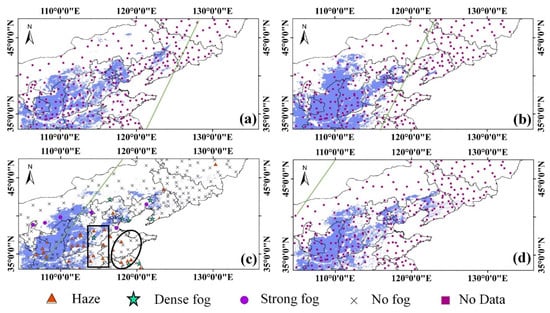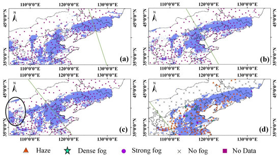- Ma, H.; Li, Y.; Wu, X.; Feng, H.; Ran, Y.; Jiang, B.; Wang, W. A large-region fog detection algorithm at dawn and dusk for high-frequency Himawari-8 satellite data. Int. J. Remote Sens. 2022, 43, 2620–2637. [Google Scholar] [CrossRef]