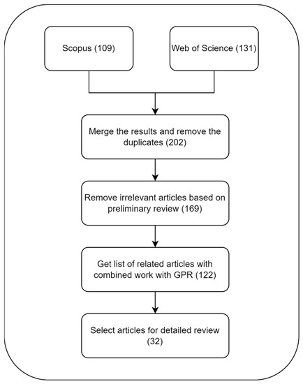 This article is structured as follows: Section 2 introduces the most frequent distresses in flexible and rigid pavements. Then, Section 3 briefly describes the NDT techniques frequently used in combination with GPR to monitor pavements, mentioning their principles and their main applications or findings. After that, Section 4 illustrates the review methodology and selection process, while Section 5 presents the most relevant works in the literature dealing with the combined application of GPR and other NDTs for road pavement monitoring by considering the methodology and the criteria described in Section 4. Finally, Section 6 shows the most interesting NDT combinations addressed in this article in addition to the conclusion and final remarks.