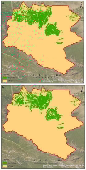 - Duan, C.; Shi, P.; Zhang, X.; Zong, N. Suitability analysis for sown pasture planning in an alpine rangeland of the northern Tibetan Plateau. Acta Ecol. Sin. 2019, 39, 5517–5526. [Google Scholar]