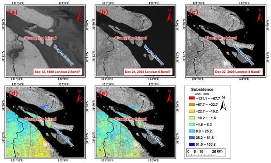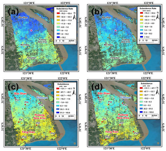 - Li, J.H.; Zhou, L.; Ren, C.; Liu, L.L.; Zhang, D.; Shi, Y.J. Spatiotemporal Inversion and Mechanism Analysis of Surface Subsidence in Shanghai Area Based on Time-Series InSAR. Appl. Sci. 2021, 11, 7460. [Google Scholar] [CrossRef]