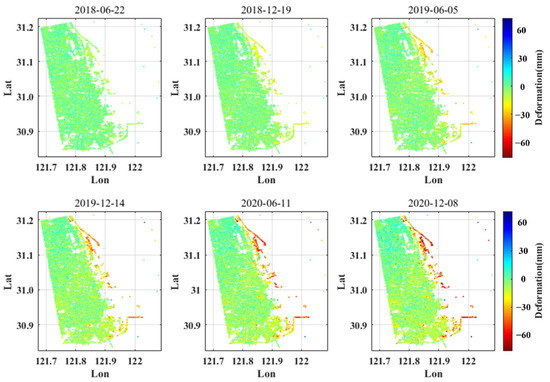 4.2. Analysis of Surface Deformation Feature Points in Shanghai Area