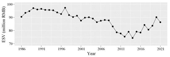A quick and straightforward approach to ecosystem service value evaluation was utilized to quantify the impacts of mining modifications in the Antabuse mining area and to understand the future prospects of the human exploitation of natural capital in this area. The ESV changes in the Pingshuo mining area were assessed using ecosystem service values per unit area for various land use categories (Table 1) [36]. Soil formation and protection, water containment, biodiversity maintenance, temperature regulation, and food production were chosen as the study’s five ecosystem services. The Pingshuo open-pit coal mine’s economic value per unit of the food production area was increased, and the mine’s land was quickly recovered.