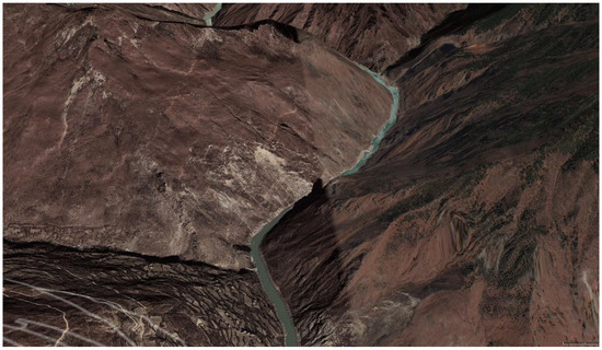 The Baige landslide occurred at night-time on 10 October 2018, on the west bank of the Jinsha River flowing on the southeastern margin of the Qinghai–Tibet Plateau (31°4′57″ N, 98°42′7″ E) [71]. Approximately 23 million m3 of rock and debris on the slope collapsed and blocked the Jinsha River, forming a landslide-dammed lake with a volume of approximately 290 million m3 [124]. Twenty-four days after the first collapse, on 3 November, a second slope failure occurred on the same slope, resulting in 3.5 million m3 of rock detaching from the steep slope and once again damming the Jinsha River for nine days. The damming of the lake and the flood that formed when the dam broke inundated and damaged thousands of houses and infrastructure components (such as bridges, roads, and part of the Yebatan hydropower project under construction) both upstream and downstream [124].