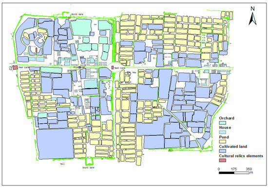 The land covers within the ancient city site of PuZhou contain a cultural relic element, an orchard, house, and fish pond (shown in Figure 5).