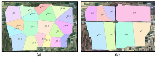 The generated sub-catchment areas by (a) the Voronoi method; (b) the modified geometric method based on Voronoi.