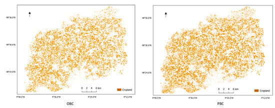 The traditional PBC is the most used method in remote sensing, especially for land use classification; therefore, this method was also widely employed in this study. The PBC was done on the pixel level, which is the smallest unit in an image, where only the spectral information of each single pixel was used. During the classification, each pixel was assigned predefined classes by using a model that was well trained with training data and a classification algorithm. In this paper, PBC is performed in both classification approaches.