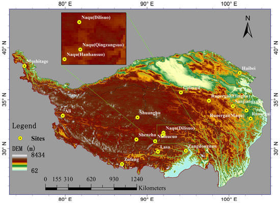 - Peng, P.; Zhu, L. Observations of land surface processes of the Tibetan Plateau based on the field stations network. Sci. Technol. Rev. 2017, 35, 97–102. (In Chinese) [Google Scholar] [CrossRef]