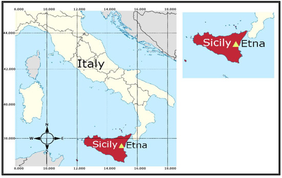 Mt. Etna is a basaltic volcano located in Sicily in the middle of Gela-Catania foredeep, at the front of the Hyblean Foreland [28] (Figure 1). This volcano is one of the most active in the world with its nearly continuous eruptions and lava flow emissions and, with its dimensions, it represents a major potential risk to the community inhabiting its surroundings.