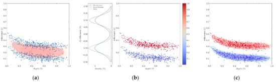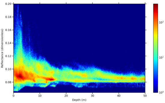 A depths density profile against 490 nm spectral reflectance. Sentinel-2 time series—Guadeloupe.