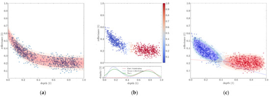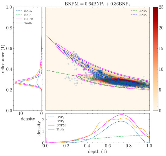 The motivation behind BNP distributions is that they can help us formally describe clouds of points in the depth-reflectance space and allow us to use standard statistical tools to help infer underlying parameters, such as parameters from Lyzenga’s equation.
