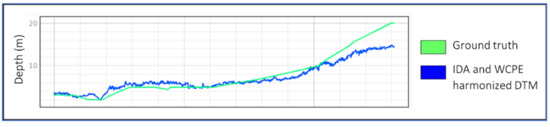 Comparison between WCPE/IDA harmonised DTM and ground truth. The depth of penetration is limited to 11/15 m due to turbidity.