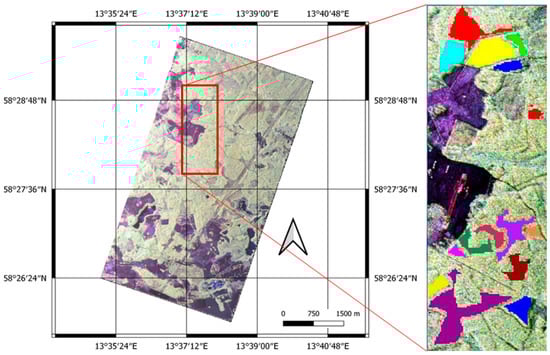The Remningstorp test site (58°80′N, 13°38′E) is located in Southern Sweden. The Remningstorp test site is overlaid with the forest stand’s boundaries, which cover about 1200 ha of the test site. The topography is relatively flat and varies slightly between 120 and 145 m above mean sea level.