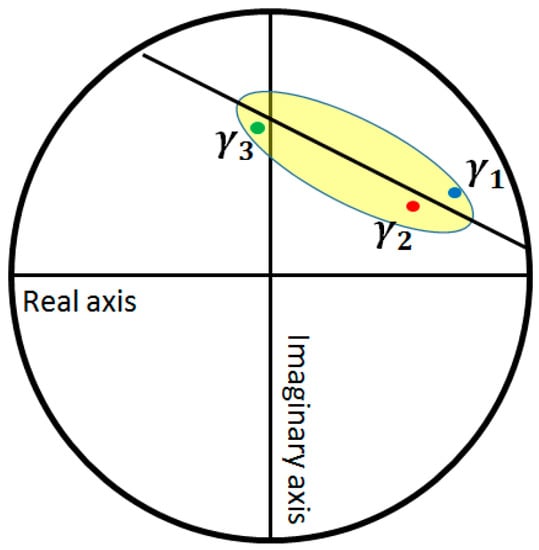 A schematic representation of the first step of the three-stage method: least-squared line fitting. The yellow region is the practical coherence region and , , and are the selected complex coherence values for the line-fitting step.