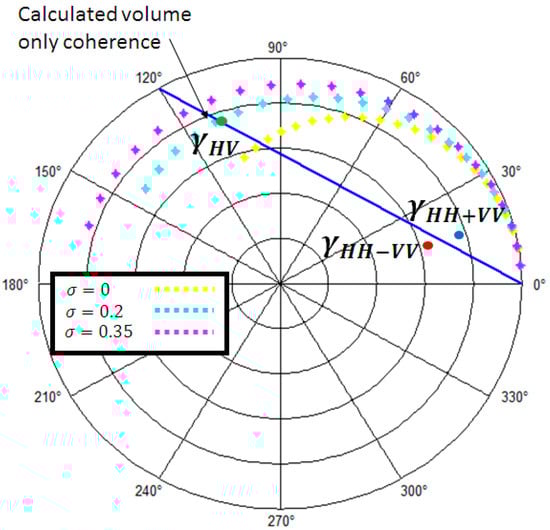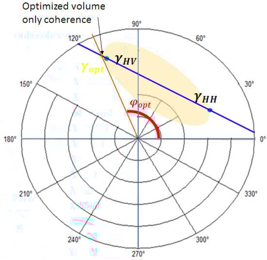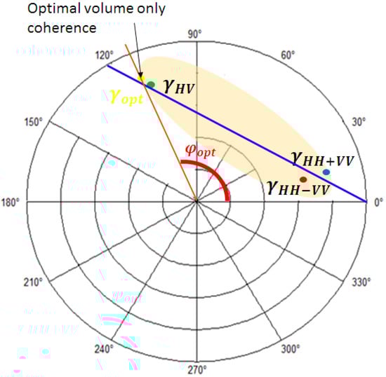 Finally, the optimal volume-only coherence, , is achieved by searching the upper phase center in the LUT. Figure 4 represents the geometrical procedure to find the optimal volume-only coherence.