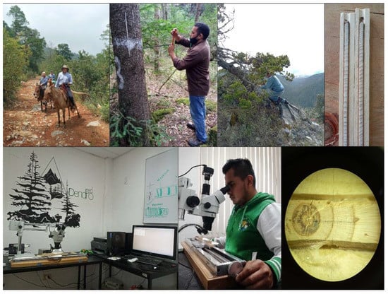 - Acosta-Hernández, A.C.; Pompa-García, M.; Camarero, J.J. An Updated Review of Dendrochronological Investigations in Mexico, a Megadiverse Country with a High Potential for Tree-Ring Sciences. Forests 2017, 8, 160. [Google Scholar] [CrossRef]