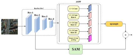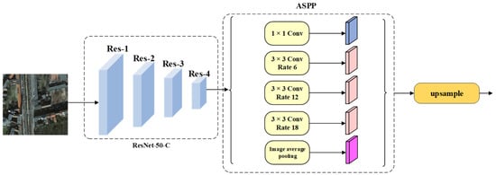 In this paper, the network shown in Figure 7 is used as the baseline network for ablation experiments. The input images are extracted features by ResNet-50-C, then further extracted features by the ASPP module, and up-sampled to obtain the results.