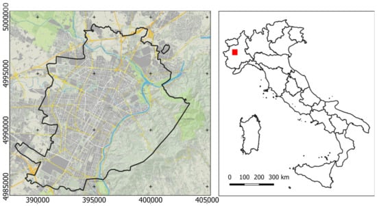 The study area corresponds to the municipality of Torino, which is located in NW Italy and sizes about 130 km2 (Figure 1).