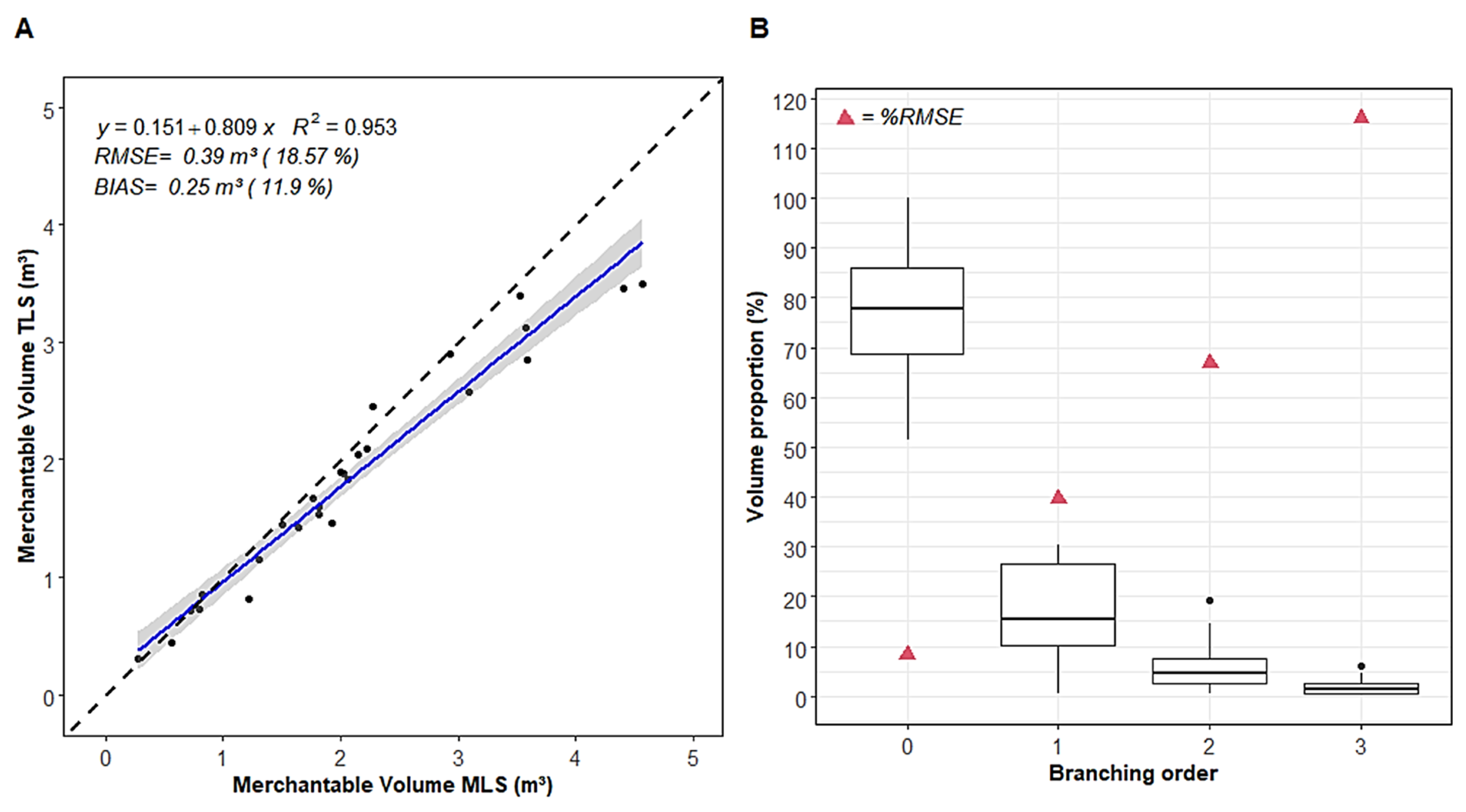 - H was estimated as the difference between the highest and the lowest point of the manually segmented tree point cloud;