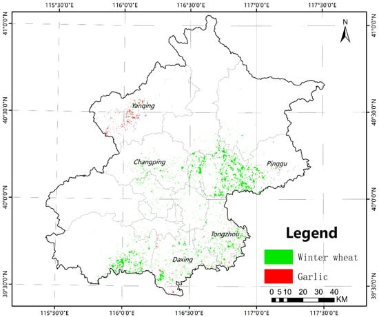 Spatial winter wheat and garlic distribution of the Mpsf map in Beijing.