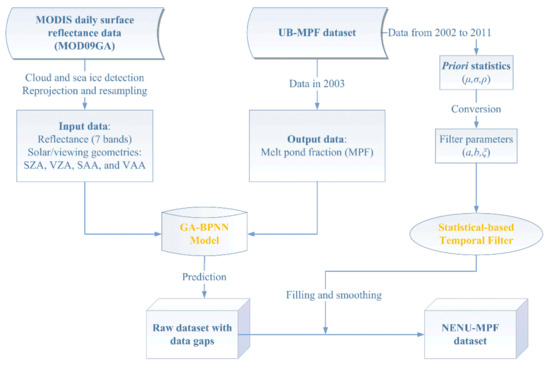 In this study, a genetic algorithm optimized back-propagation neural network (GA-BPNN) and a statistical-based temporal filter were used to generate the NENU-MPF dataset. The main workflow for generating the NENU-MPF dataset is shown in Figure 2.