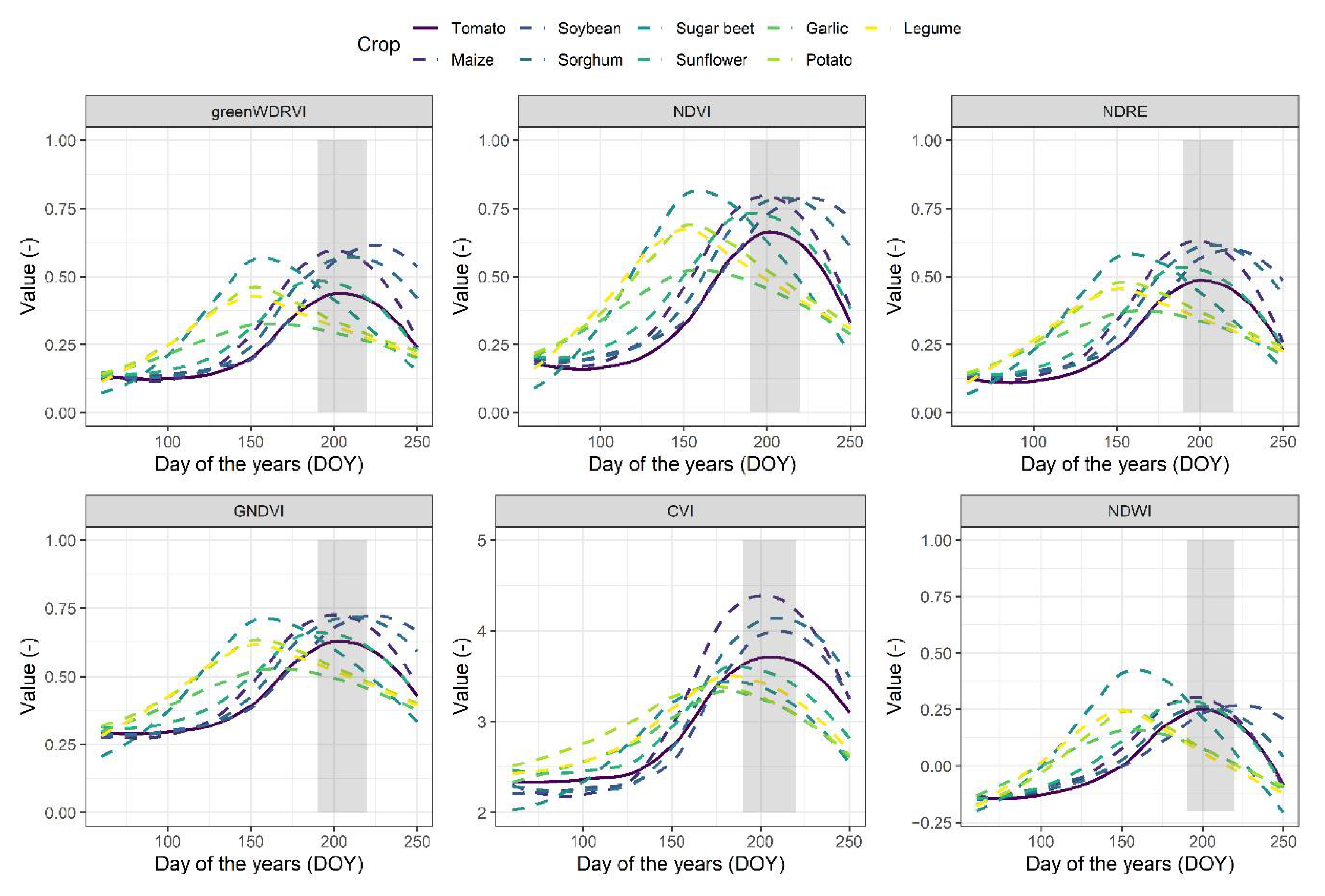 - Meroni, M.; d’Andrimont, R.; Vrieling, A.; Fasbender, D.; Lemoine, G.; Rembold, F.; Seguini, L.; Verhegghen, A. Comparing Land Surface Phenology of Major European Crops as Derived from {SAR} and Multispectral Data of Sentinel-1 and -2. Remote Sens. Environ. 2021, 253, 112232. [Google Scholar] [CrossRef]