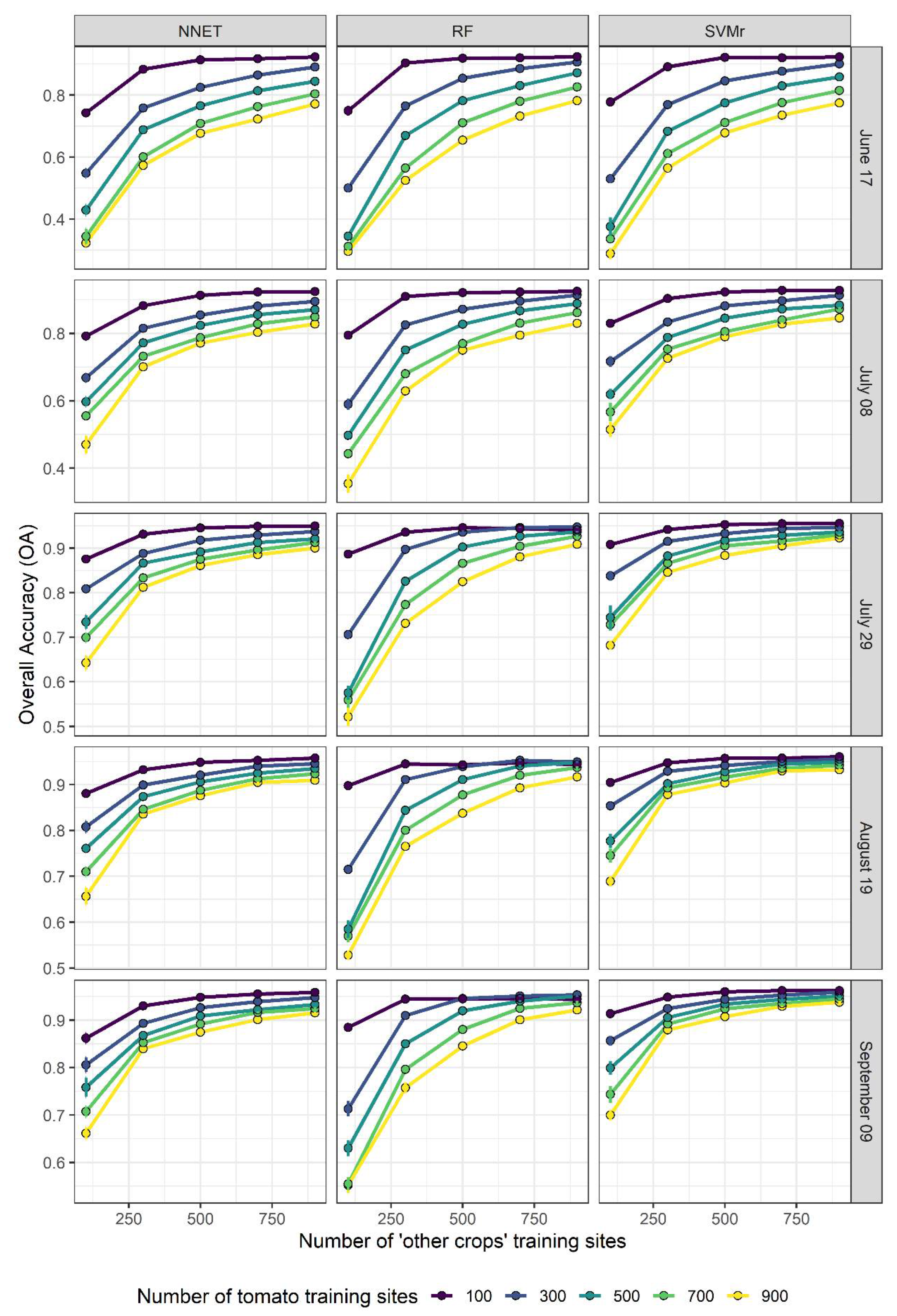 Impact of Training Set Size and Lead Time on Early Tomato Crop Mapping Accuracy