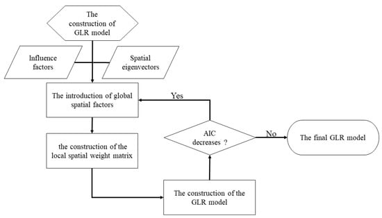 The construction of the GLR model involves (1) the introduction of global spatial factors; (2) the construction of the local spatial weight matrix; (3) the construction and judgment of the GLR model; and (4) obtaining the final GLR model.
