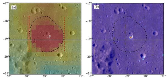 Thus, there are at least two kinds of buried mare deposits in the B-K region, which erupted during different episodes. A similar conclusion was also proposed by Wang and Qiu [7] using the M3 data, which suggested that the younger buried mare basalt occurred in a fresh crater at (69.1°E, 18.9°S, 1.4 km) (Figure 11a, marked S, white circle) just south of Region C.