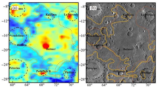 - Wang, X.; Qiu, D. Lunar Cryptomare: New Insights Into the Balmer-Kapteyn Region. J. Geophys. Res. Planets 2018, 123, 3238–3255. [Google Scholar] [CrossRef]