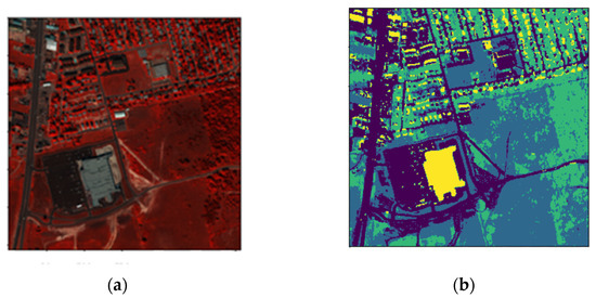 (a) Hyperspectral remote sensing image; (b) label image showing different terrains.