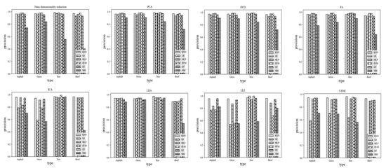 The accuracy of each terrain classification obtained by the dimensionality reduction method and the classification method is shown in Figure 8.