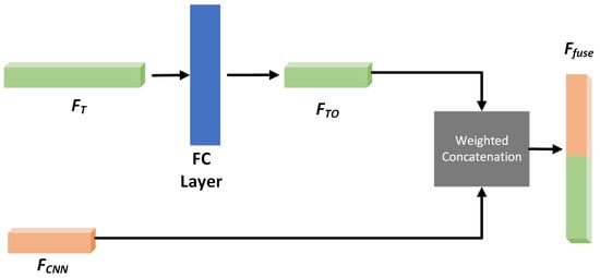 In order to combine these two types of features, we added a hand-crafted feature insertion module (HcFIM) to our feature extraction network. As shown in Figure 5, we adopt the weighted concatenation method proposed by Zhang et al. in [48] to construct the HcFIM. Considering the disparity in feature dimensions between the two types of features, the model is mainly optimized for features with higher dimensions. In comparison, the impact of features with lower dimensions is weakened, which leads to the occurrence of overfitting. Therefore, the balanced feature dimension is needed to avoid overfitting occurrences. Specifically, fully-connected layers are adopted to balance the dimension between the two types of features:
