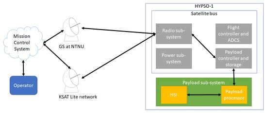 A rising demand for remote sensing data [,], along with the increased accessibility of small satellite platforms and launch opportunities [] have opened the door to a growing industry of governmental, commercial, and university-developed small satellite missions. These missions tend to focus on quick development times and highly ambitious scientific objectives. Immature technologies are tested rapidly on lower-cost bus platforms. To do this, spacecraft (s/c) platforms can be designed within the Cube Satellite (CubeSat) form factor and use payloads and subsystems based on Commercial Off-The-Shelf (COTS) components []. This minimizes the efforts needed for equipment and allows more time for payload development. Using standardized components can reduce the overall cost and schedule, but they also introduce integration and verification challenges when combining subsystems from different vendors [,]. The Norwegian University of Science and Technology (NTNU) has developed a 6U Cube Satellite (CubeSat) with a novel, high-performance hyperspectral imager using multiple Commercial Off-The-Shelf (COTS) optical elements and a configurable on-board processor for ocean color remote sensing. The goal of the mission is to provide open-access and on-demand hyperspectral data for scientists and interested parties [].