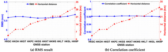 | GNSS | Horizontal Distance (km) | RMS (mm) | r | GNSS | Horizontal Distance (km) | RMS (mm) | r | GNSS | Horizontal Distance (km) | RMS (mm) | r |