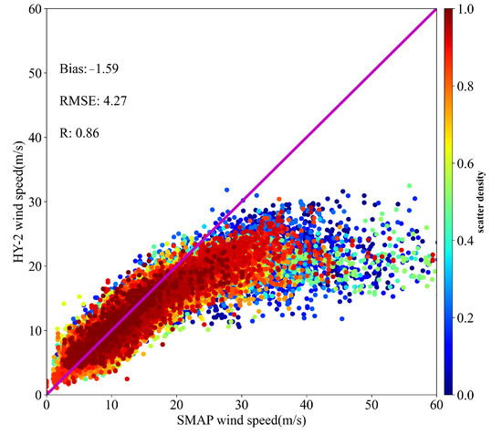 4.2. Statistical Analysis of HY-2 Scatterometer and SMAP Radiometer