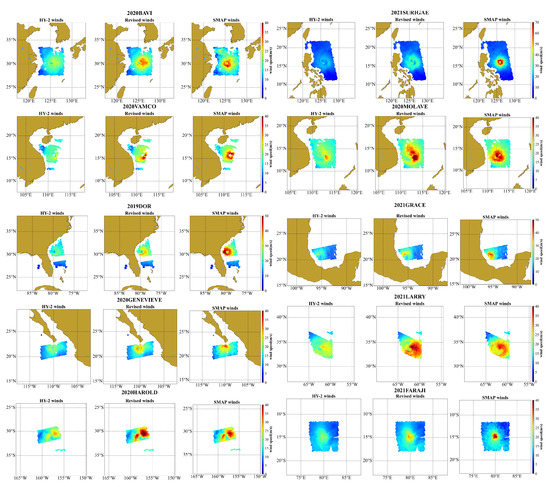 4.1.2. Tropical Cyclones Jointly Captured by HY-2 and SMAP