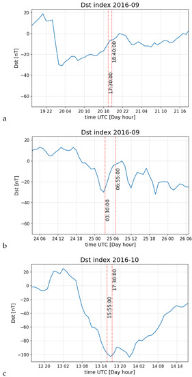Dst index for considered datasets: (a)—L547449; (b)—L547785; (c)—L552177.