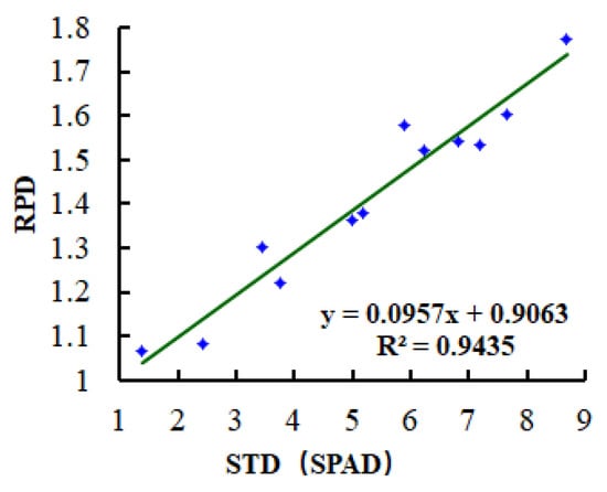 The correlation diagram of model RPD and STD of sample SPAD values.