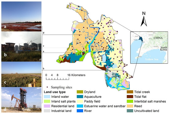 Location of the Liao River Delta: (a) destroyed wetlands; (b) urban sprawl; (c) low-intensity tourism development; (d) industrial development.