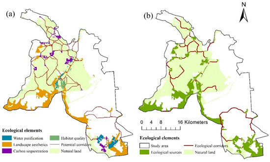 The ESP of the Liao River Delta. (a) ESP before connectivity optimization; (b) ESP after connectivity optimization.