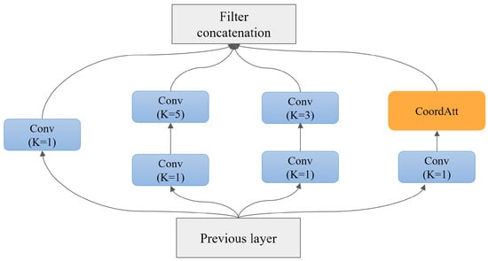 - Hou, Q.; Zhou, D.; Feng, J. Coordinate Attention for Efficient Mobile Network Design. In Proceedings of the 2021 IEEE/CVF Conference on Computer Vision and Pattern Recognition (CVPR), Nashville, TN, USA, 20–25 June 2021; pp. 13708–13717. [Google Scholar]