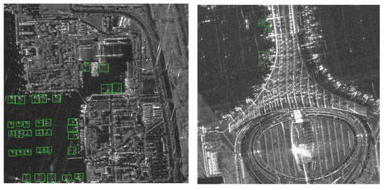Traditional SAR target detection methods mainly include the constant false alarm rate (CFAR) algorithm, based on the statistical distribution of background clutter [,], and the algorithm of manually extracted image features [,]. The CFAR algorithm is primarily influenced by the statistical characteristics of background clutter, and it is difficult to accurately model the scene of complex objects, which generates more false alarms. The algorithm for manual extraction of image features divides detection into two separate processes: feature extraction and target classification. However, the process of manually extracting features is complex and highly dependent on parameter settings. Thus robustness and generalization are difficult to guarantee.