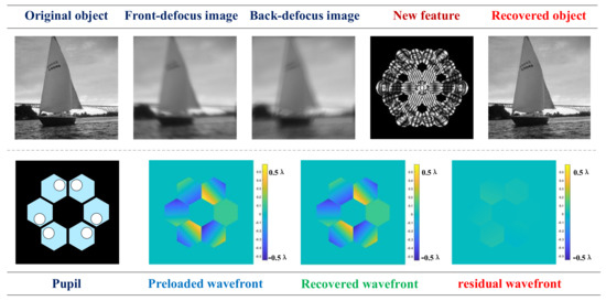16]. PR is only available for point target wavefront sensing. PD is suitable for wavefront sensing of point targets and extended targets. It uses an optical diffraction model and further utilizes an iterative algorithm to acquire the true co−phasing errors. The iterative process has the problem of a large amount of computation, being time-consuming and low robustness (stagnation problem), especially when the object is unknown [