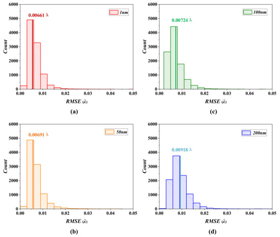 Figure 9a). The average RMSE is 0.09438 λ and 0.00661 λ, respectively. We fully proved the superiority of the feature image proposed in this paper for co-phasing sensing of segmented telescopes. The network works fine most of the time, and the success rate of the network operation can reach more than 95%.