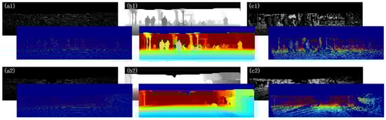 With the gradual expansion of computer vision applications, all walks of life have higher requirements for depth information. Accurate depth data is essential for self-driving cars, autonomous navigation systems, and virtual reality []. However, depth is often sparse and partially missing due to device and environmental limitations. It is fatal in the reconstruction of 3D information []. Therefore, the completion methods of the sparse depth data have been widely studied in recent years [,]. However, traditional methods often fail to achieve good results because of the sparsity and lack of sufficient prior knowledge of the missing depth [,]. With the development of deep learning, people began to use deep neural networks to complete the depth information and achieve better results than the traditional interpolation methods [,].
