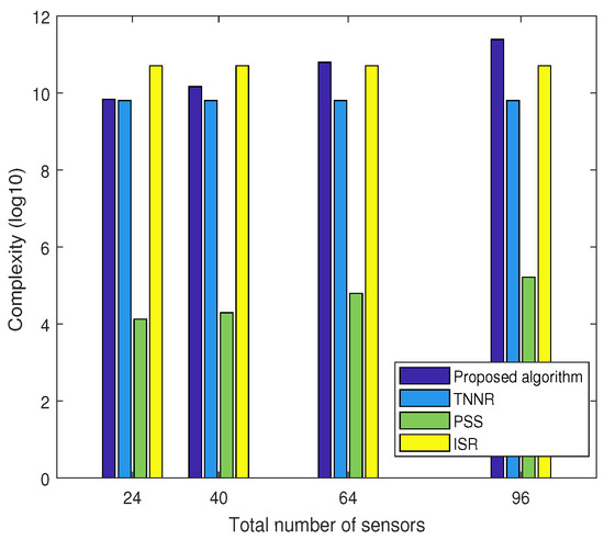 Complexity comparison versus the total number of sensors.