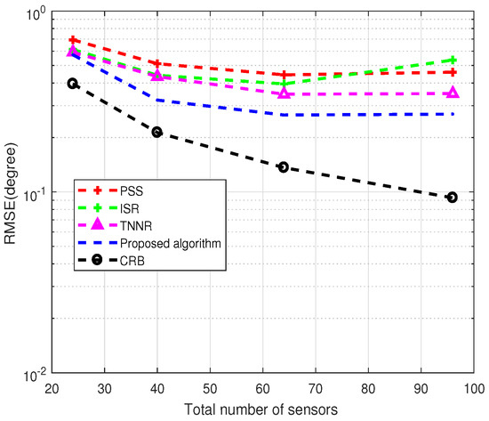 RMSE versus the total number of sensors.