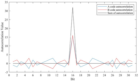Autocorrelation processing results of complementary codes and sum result of two autocorrelation functions.