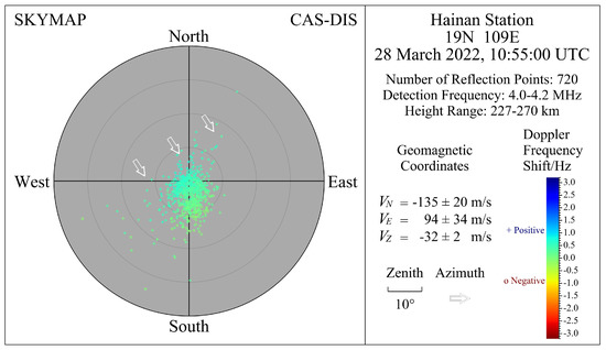 Statistics of the F-region drift velocity in Hainan from 28 March 2022, 05:00:00 to 29 March 2022, 05:00:00 in UTC.