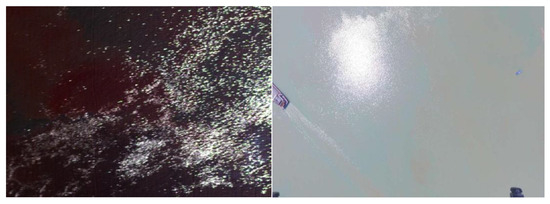 Suitable time for UAV imaging needs to be considered to avoid sunlight reflection. It is not suggested to fly UAV at noon, especially it is sunny, the sunlight may be perpendicular to the surface of water. The images obtained at noon is shown in Figure 7. The light is intense so image is over-exposed, useful information will be lost and the value of pixels reaches the maximum. Severe meteorological conditions such as strong winds and precipitation even make UAV unable to take off.